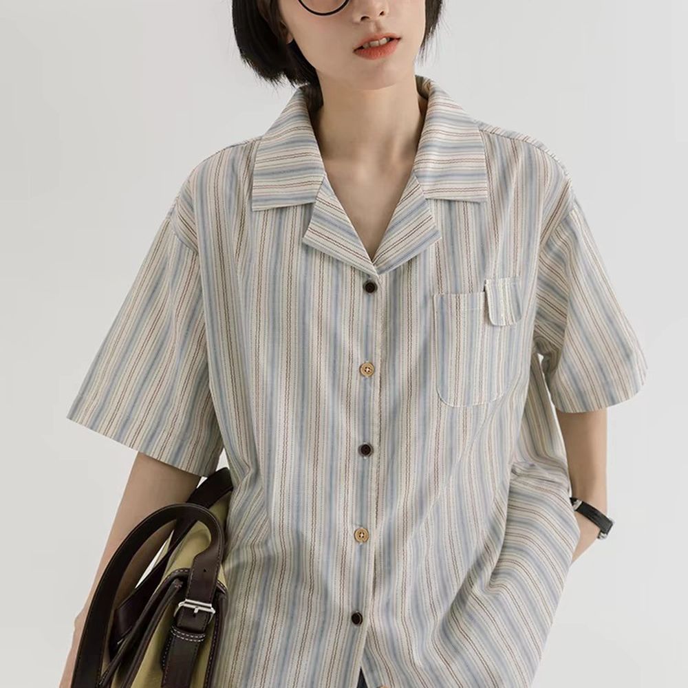 College Style Japanese Striped Short-Sleeved Shirt Female Student Tops