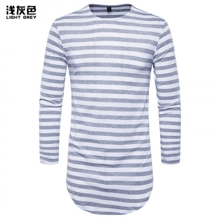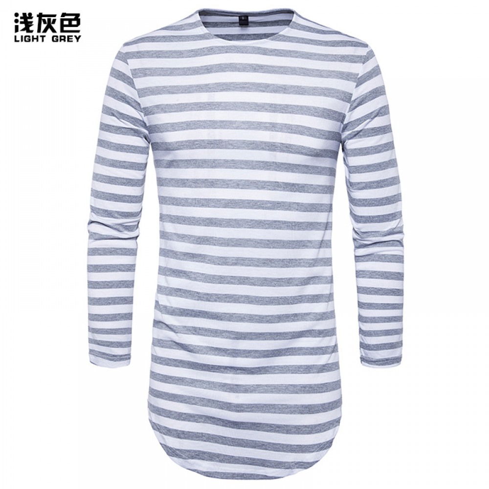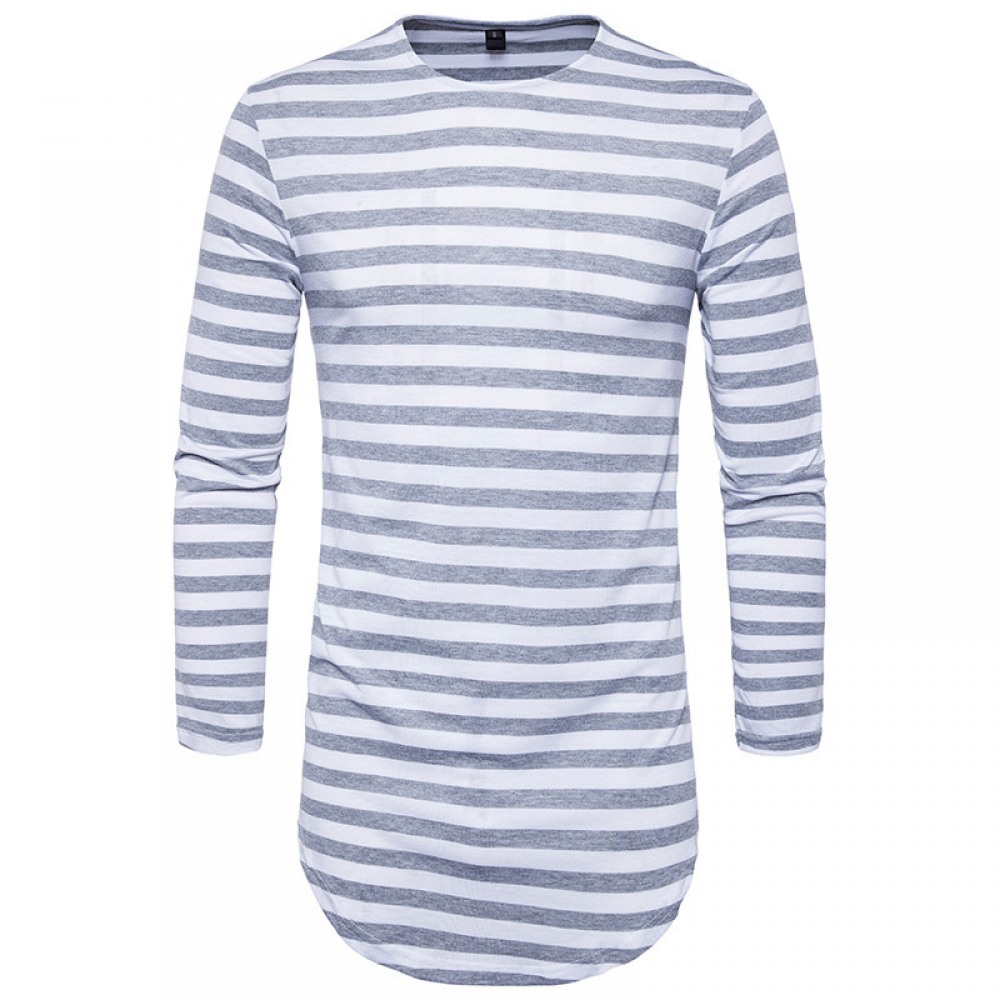 Hip-Hop High Street Summer Men's Round Hem High Street Striped Long T-Shirt