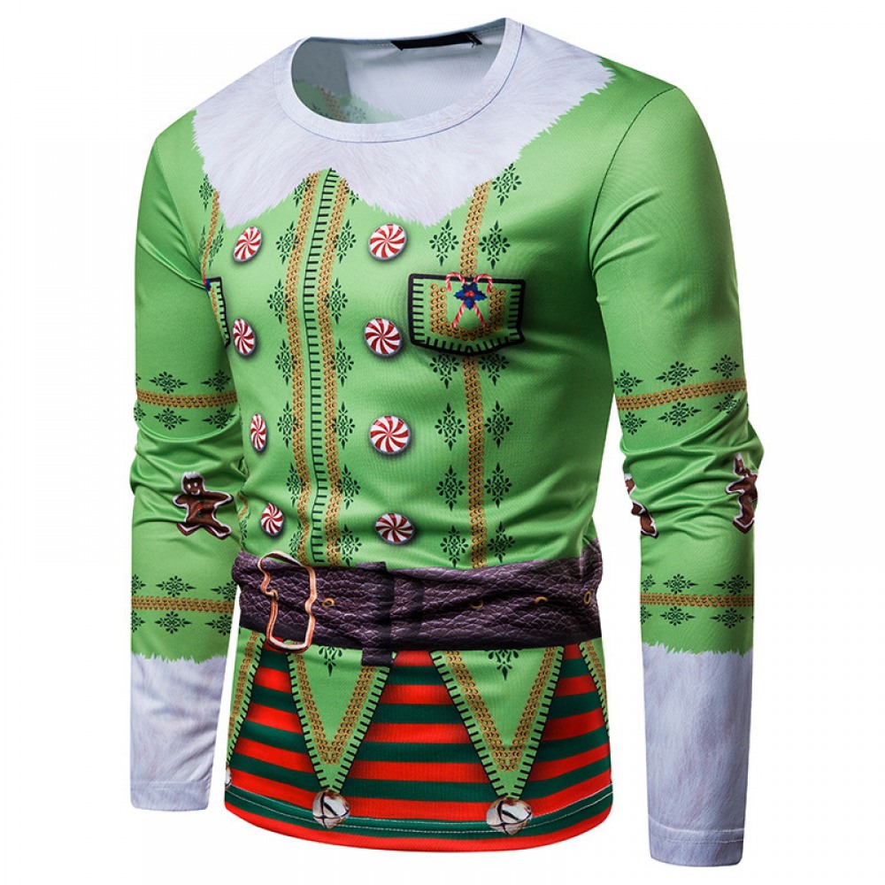 New 3D Personality Printing Fashion Men's Christmas Long Sleeve T-Shirt