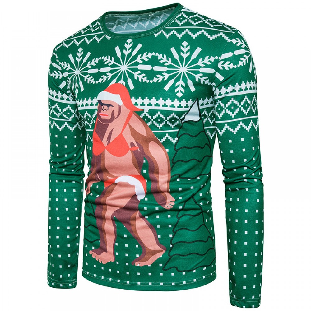 Hot Sale New Men's Personalized Christmas Clothes Santa Claus Round Neck 3D Long Sleeve T-Shirt