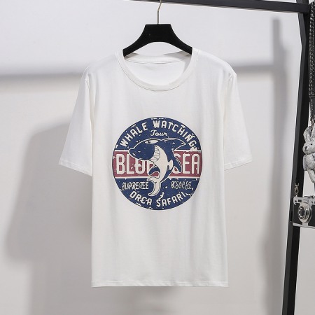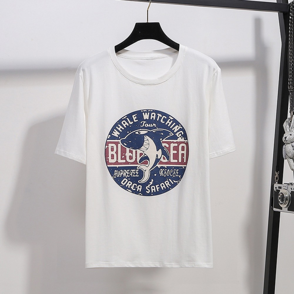Plus Size Women's Summer Clothing New Fat Super Plus Size Loose and Thin Stitching Printed Short-Sleeved T-Shirt Women