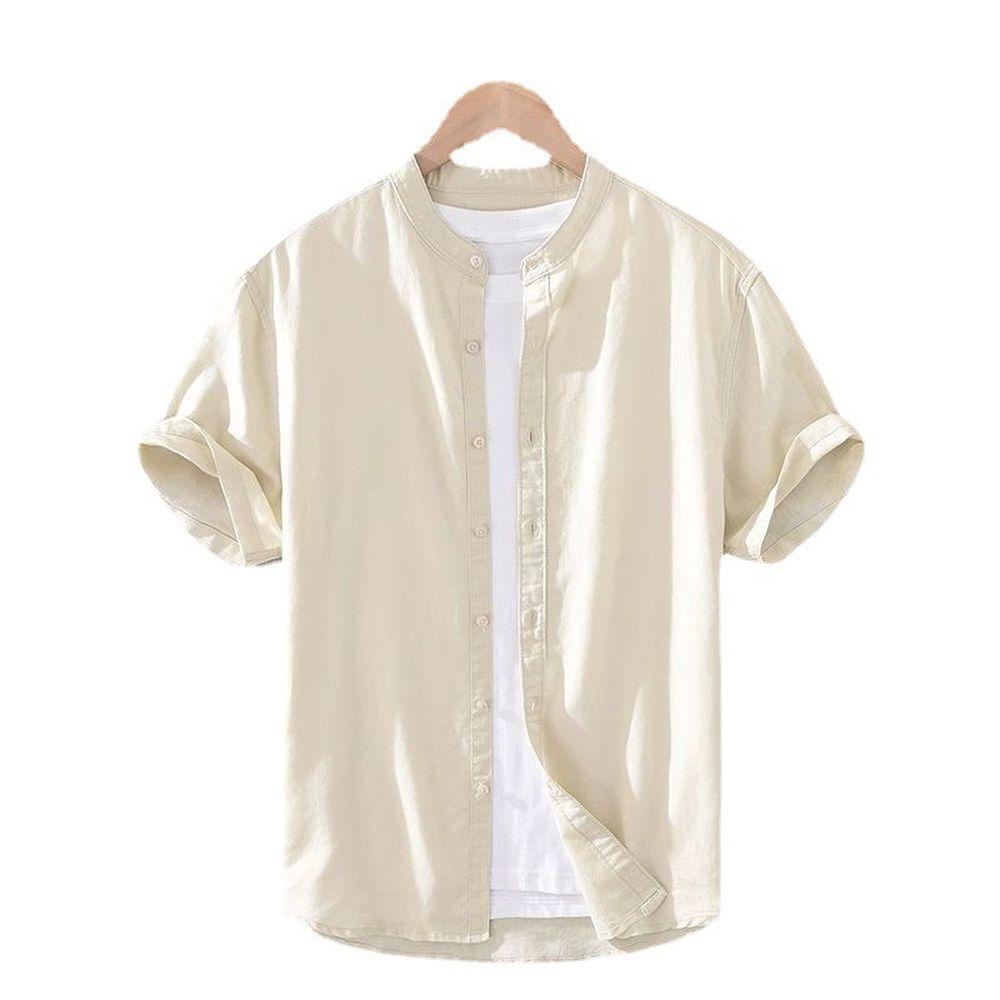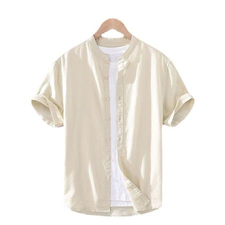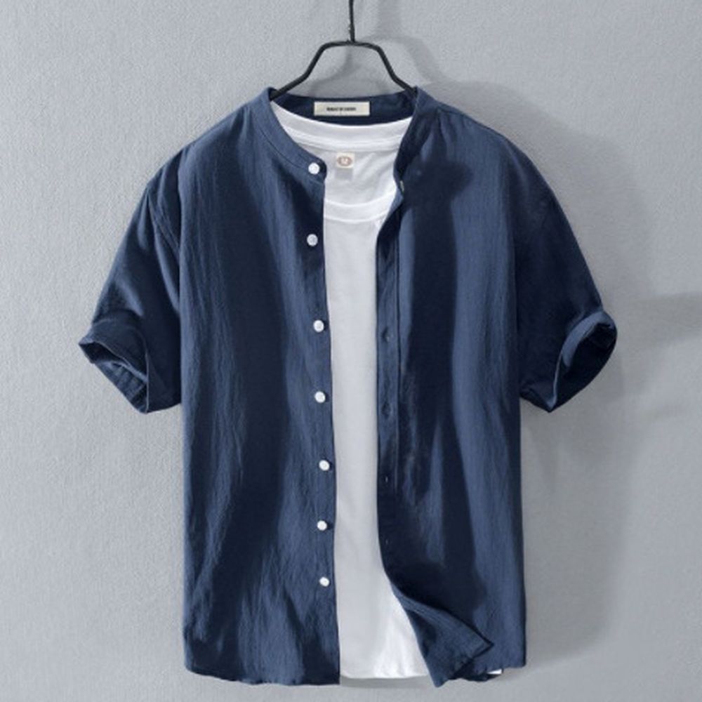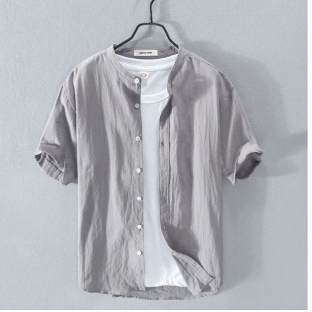 Stand Collar Linen Shirt Men's Short Sleeve Loose Casual Cotton And Linen Shirt Linen Fabric Top